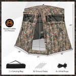 ● Expanded Interior Space:  Featuring an expanded design with 4r additional small sides alongside the 4 large sides, this hunting blind maximizes internal space. With a fully extended floor area of 82″ x 82″ (L x W), a height of 69″, and a hub-to-hub size of 74″ x 74″ (L x W), it comfortably accommodates 2-3 persons.