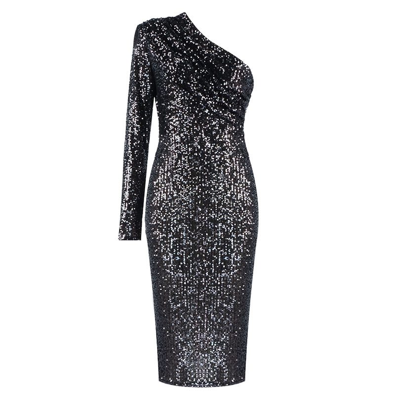 One-shoulder Dress Oblique Collar Wrapped Chest Evening Dress Fashion Sequins Nightclub Sexy