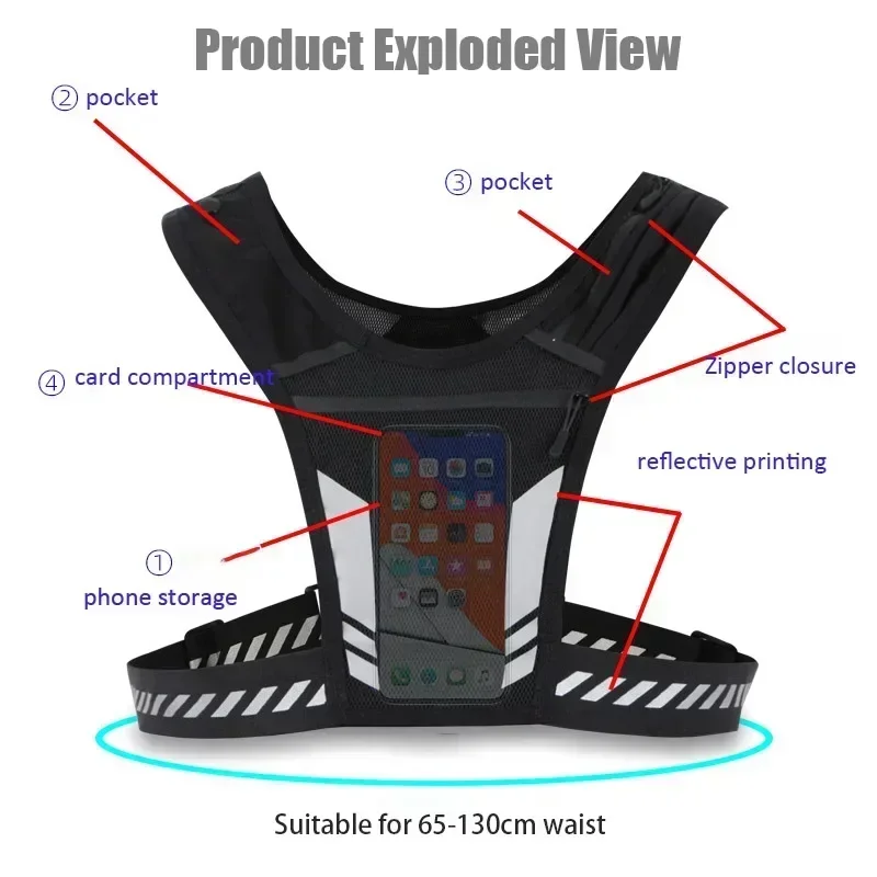 Reflective Running Backpack Universal Lightweight Sport Running Vest Mobile Phone Cards Bag For Jogging Fitness Male Female Vest
